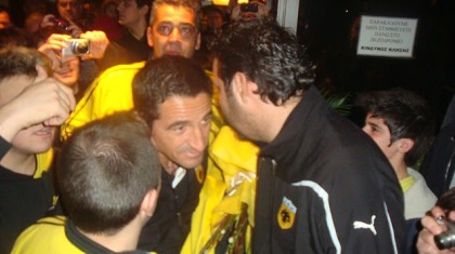 Η ΑΕΚ μπορεί να μην βρίσκετε στις καλύτερες της μέρες, παρόλα αυτά ο Μανόλο Χιμένεθ είναι ψιλά στις καρδιές των φίλων της «ένωσης». Χτες, όταν η ομάδα έφτασε στις Σέρρες για τον σημερινό αγώνα με την τοπική ομάδα, 100 φίλοι της ΑΕΚ περίμεναν έξω από το ξενοδοχείο που μένει η αποστολή της ΑΕΚ για να εκδηλώσουν την αγάπη τους για τον Ισπανό. Το τοπικό club της ORIGINAL, αποθέωσε τον Χιμένεθ, ο οποίος χρειάστηκε μισή ώρα για να πάει να δειπνήσει μ ε την υπόλοιπη ομάδα. Ο κόσμος παρότρυνε τον Χιμένεθ να πάρει όποιες αποφάσεις θεωρεί αυτός σωστές για το καλό του συλλόγου. Πάντως, δεν έλειψε και η δόση χιούμορ από την μεριά του τεχνικού της «ένωσης», ο οποίος είπε πως θα κοουτσάρει την ομάδα με το αναμνηστικό μπλουζάκι που του δώσανε.